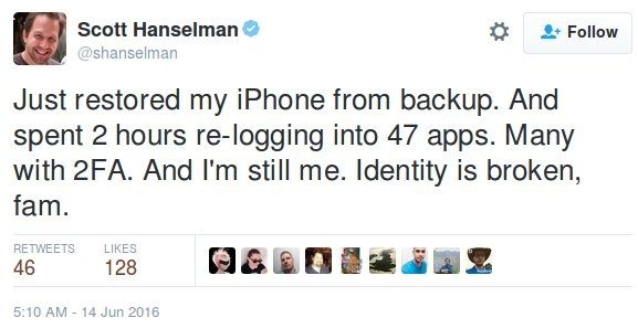 I think this tweet lamenting the state of two-factor authentication and online identity will be increasingly common: